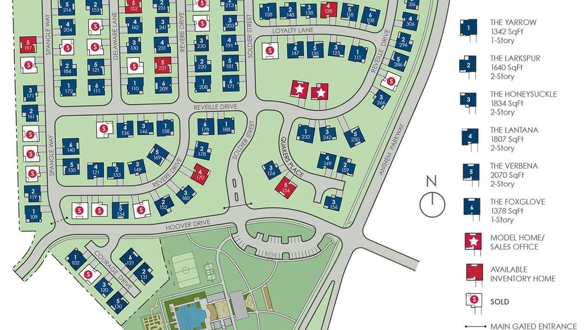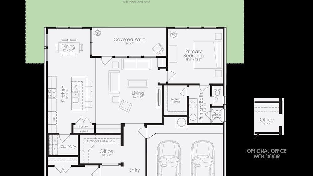 The Foxglove at Anthem Cottages is built by Clark Wilson Builder, and this cottage-designed one-story home offers 10-foot ceilings, an open floor plan with a dining room, island kitchen with dining area that is open to the family room, two bedrooms, two bathrooms, and a two-car garage. The secondary bedroom and bathroom are located off the entry, along with a home office with optional built-in desk. The private primary owner’s suite is located off the living room and offers a walk-in closet and an en-suite that includes a double vanity and walk-in shower. This functional home plan includes a laundry room between the kitchen and garage. The Foxglove features three different elevations to choose from including a traditional exterior, a prairie exterior, and a modern farmhouse exterior. Each home includes a private fenced yard in rear with covered patio, gate, and sprinkler system. At Anthem Cottages you can enjoy low-maintenance living in a gated community within the master-planned community with resort-style amenities. Whether you’re a busy professional or a full-time traveler, here you’ll find comfort and convenience, minimal maintenance, and affordable prices all wrapped up in fresh, new innovative home designs with ‘Hill Country Cottage’ exteriors. Visit our model home today and inquire about our buyer incentives!